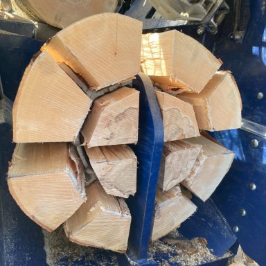Je nach Holzstärke kommen 8- oder 12-fach Spaltkreuze zum Einsatz. Dadurch entstehen gleichmäßige Holzscheite, die sich optimal zum Trocknen und Heizen eignen.