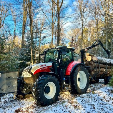 Nach dem Einschlag wird das Holz mit unserem eigenen Fuhrpark aus dem Wald transportiert. Wir legen großen Wert auf sichere und waldschonende Transportwege, um die Natur zu schützen und die Holzqualität nicht zu beeinträchtigen. Durch die kurze Distanz zwischen Wald und Lagerplatz sparen wir Zeit und reduzieren Emissionen. So kommt das Holz schnell, sauber und unbeschadet für die nächste Bearbeitungsstufe bei uns an.